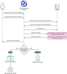 اگر اپ موجود نباشد، malware تلاش میکند Huawei AppGallery را (یا اپ legítimate آن یا مرورگر وب پیشفرض) باز کند تا کاربر بتواند اپ رسمی ToTok را دریافت کند.