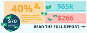 بدیهی است که بازنشانی رمز عبور بخشی اجتنابناپذیر از کار روزمرهٔ تیمهای IT است. بنا بر گزارش Gartner، حدود ۴۰٪ تماسهای مرکز خدمات (Help Desk) مربوط به انقضا، تغییر یا بازنشانی رمز عبور هستند. همچنین، بر اساس برآورد Forrester، هر بازنشانی رمز عبور بهطور میانگین ۷۰ دلار هزینه دارد — بنابراین روشن است که این هزینهها بهسرعت میتوانند به مبالغ چشمگیری تبدیل شوند.